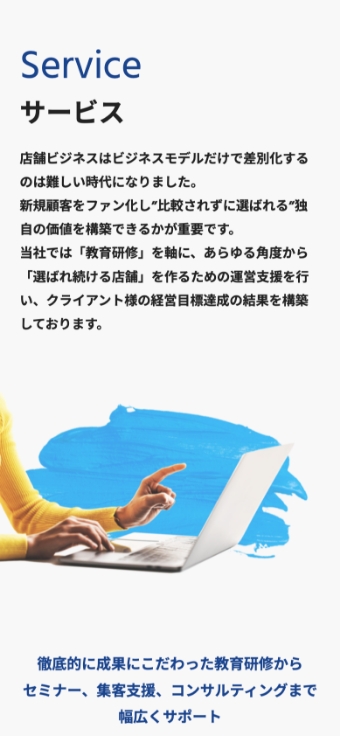 店舗ビジネスに特化した教育研修・コンサルティング企業のウェブサイトです。