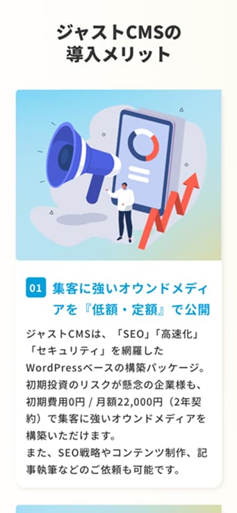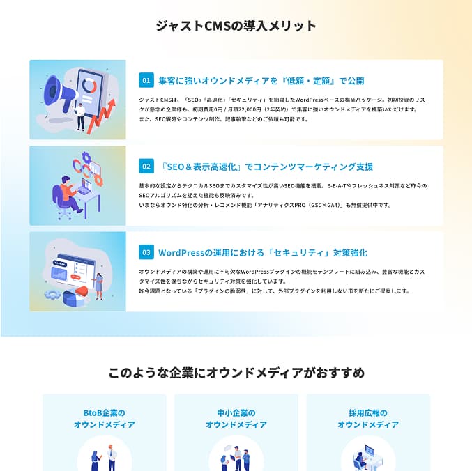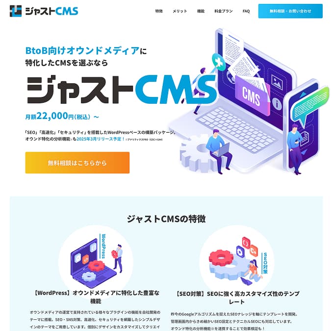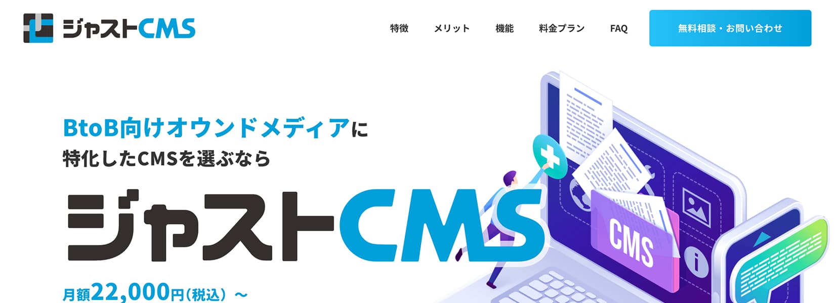 オウンドメディア支援サービス「ジャストCMS」の製品紹介サイトです。