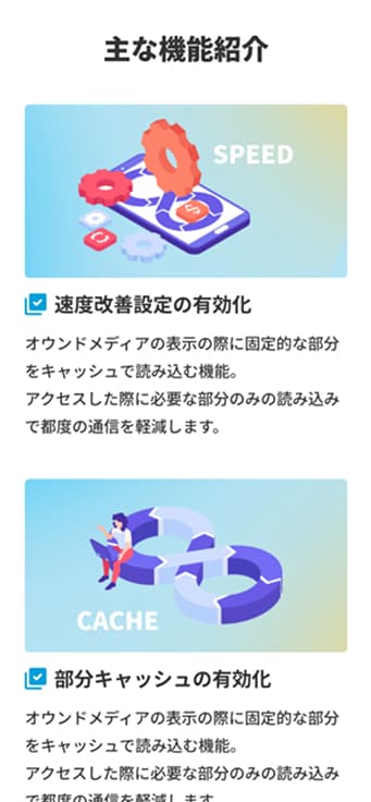 構成全体では、サービスの特徴や、「どんな方に使っていただくと有効活用できるのか」という軸で訴求し、見た方が自分ごととして捉えられるように作成しました。