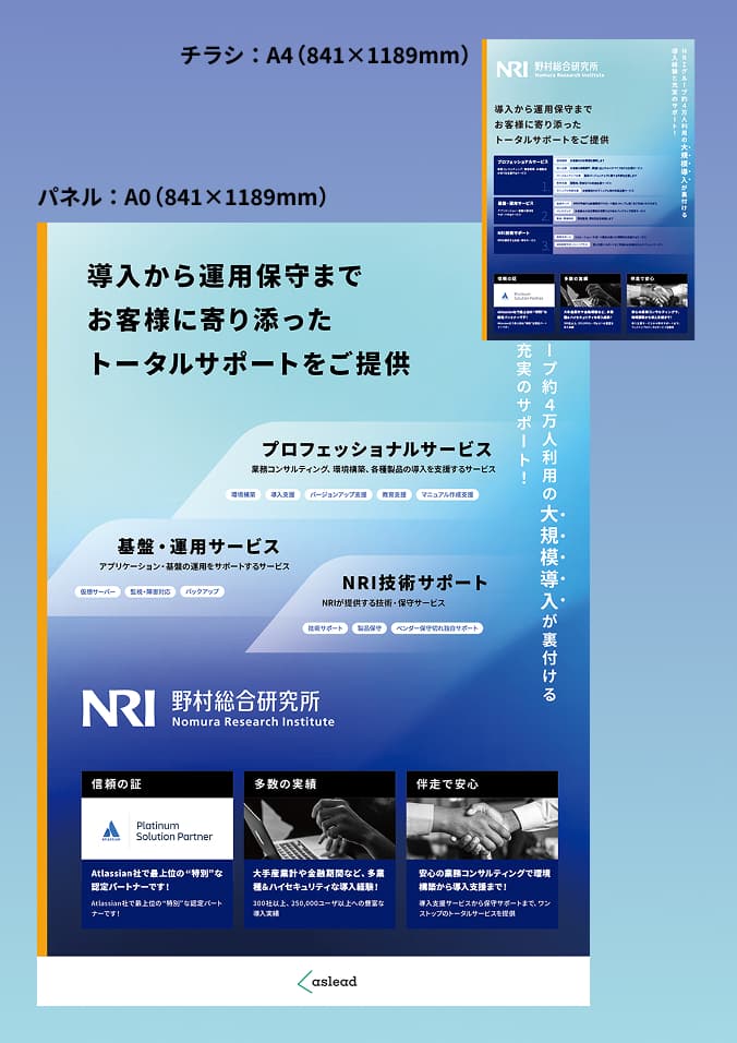 野村総合研究所様のAsleed事業が提供するソリューション紹介のPOP&チラシです。