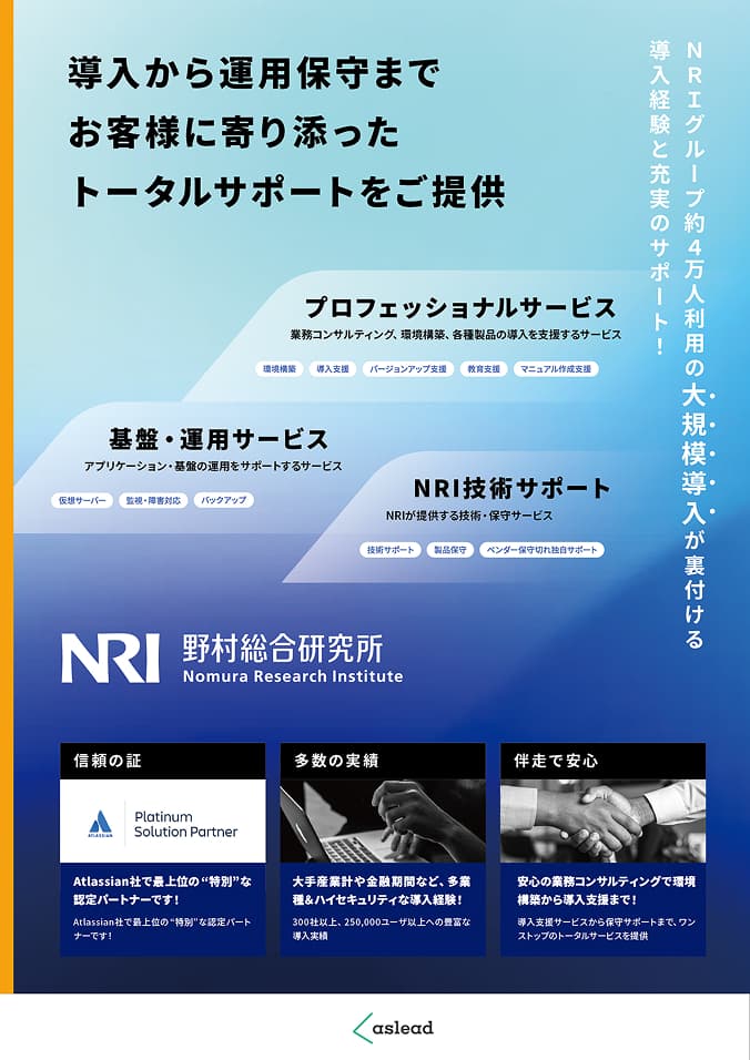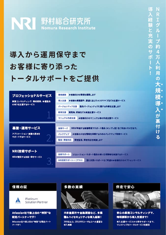 組織として開発環境や効率的な業務管理をご担当する方向けに、野村総合研究所様だからできる、トータルリューションを訴求し、リード獲得を目的として制作いたしました。